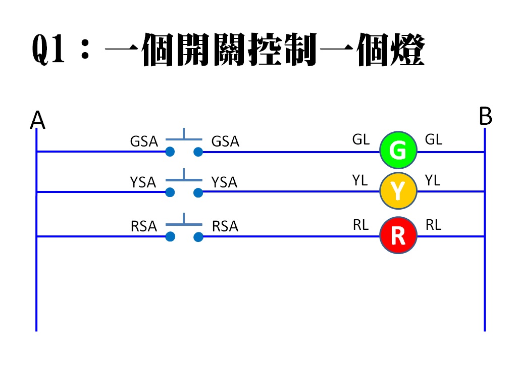 Q1一個開關控制一個燈