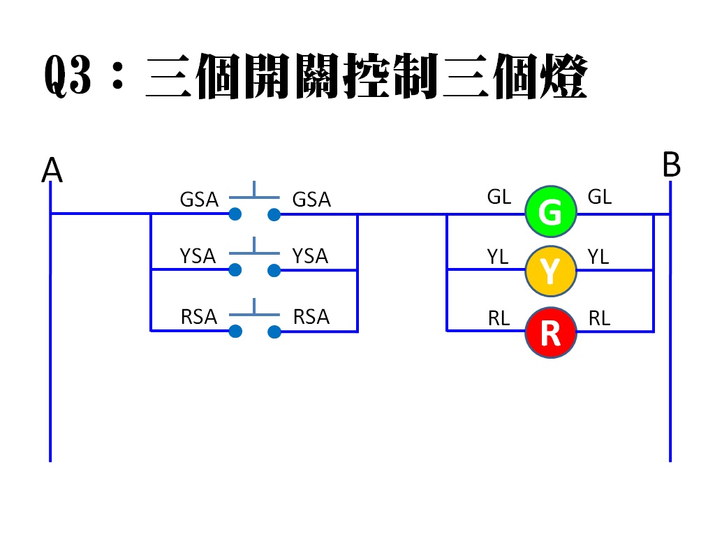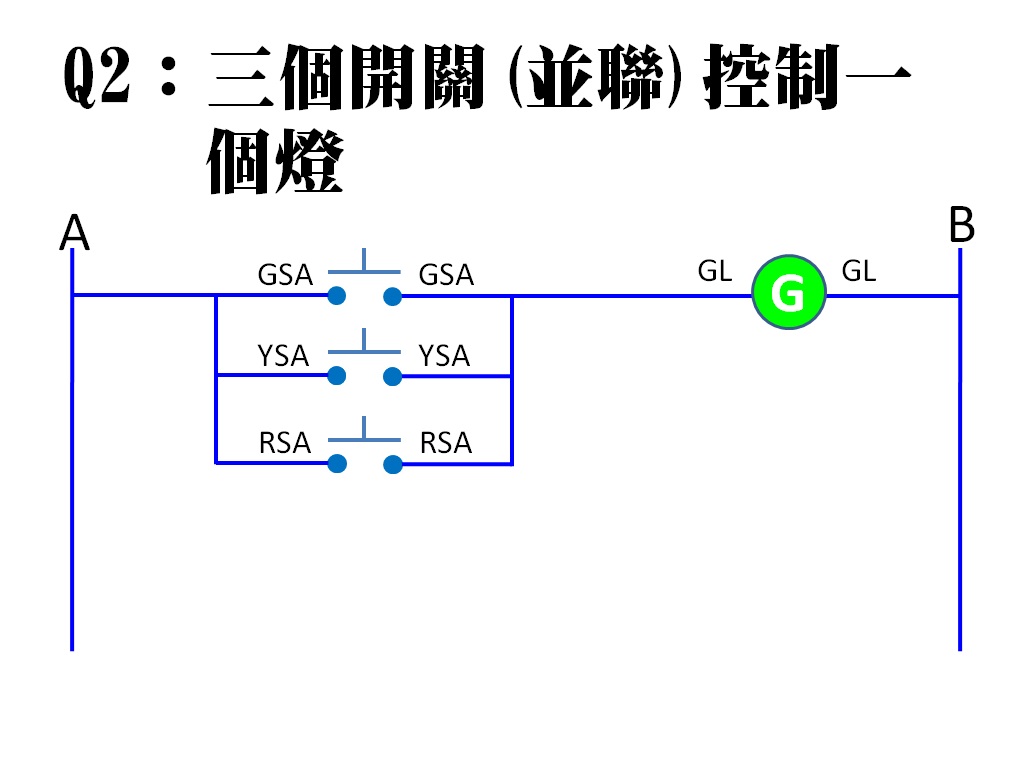 Q2三個開關(並聯)控制一個燈